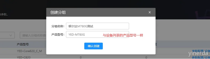 参数设置->分组管理->创建分组。分组名称自定义,分组产品型号必须和设备列表显示的“产品型号”一样。