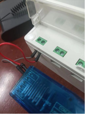 使用杜邦线,将485接口的正负极相连,A端连A端,B端连B端,这里电表的1号口为B端,2号口为A端。
