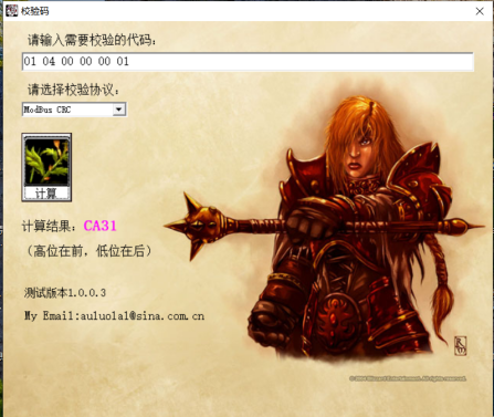 01 04 00 00 00 01,我们用CRC校验码计算工具就能够得到这段数据对应的校验码