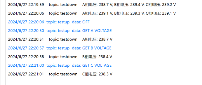 DTU每次发送之后,电表都会把采集到的数据发回给DTU,DTU也会自动将自己串口收到的数据传给MQTT。